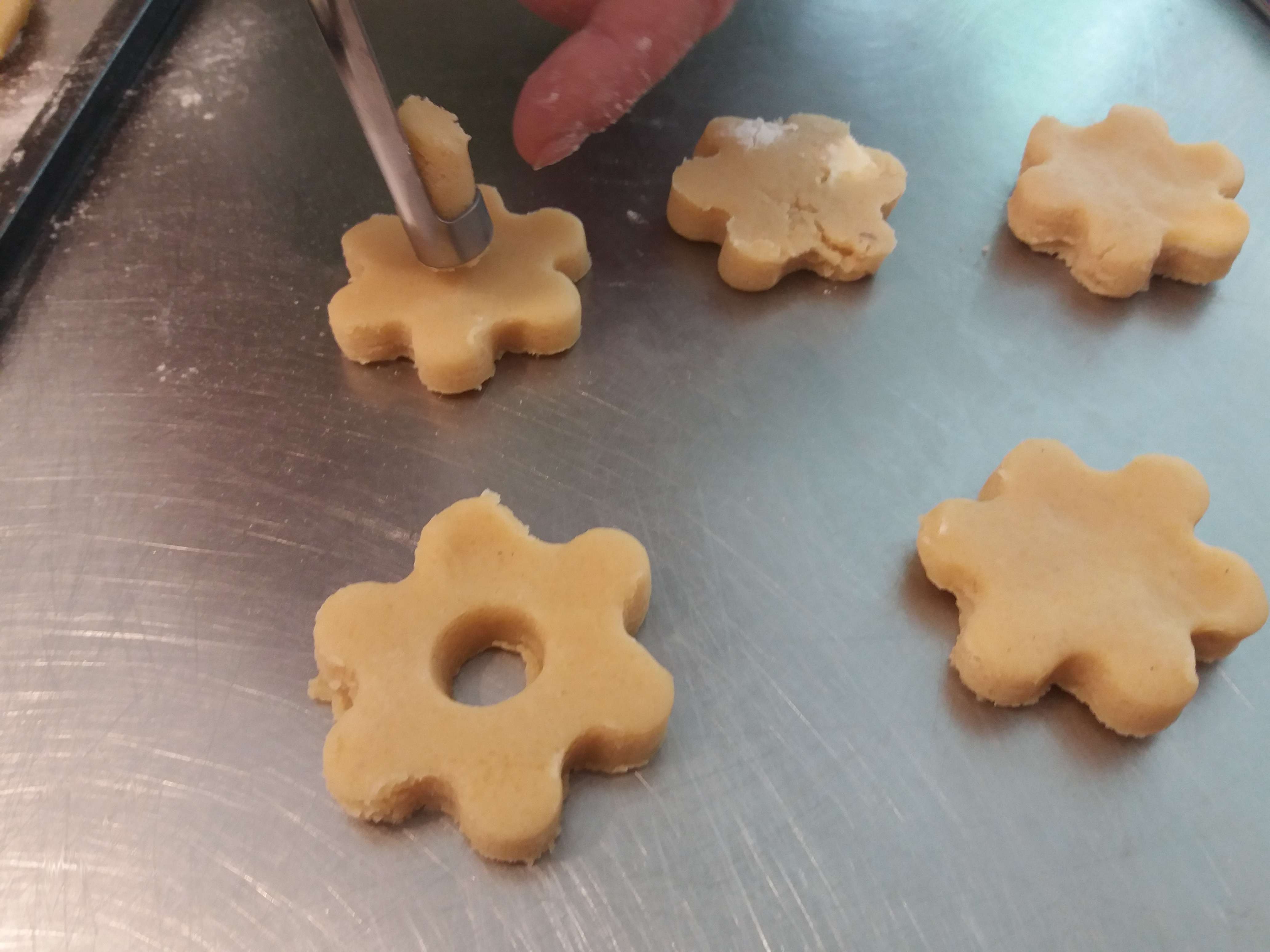 Les fruits sont hachés aussi manuellement, nos biscuits sont élaborés avec des procédures bien définies avec des formes réalisées à l'emporte-pièce.